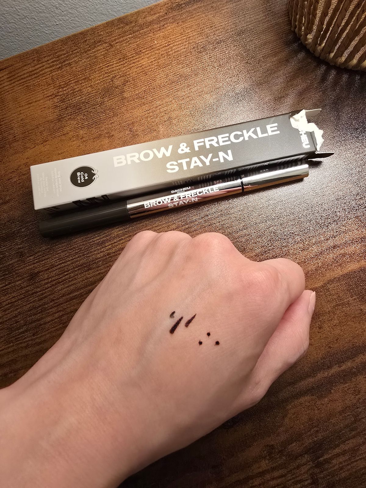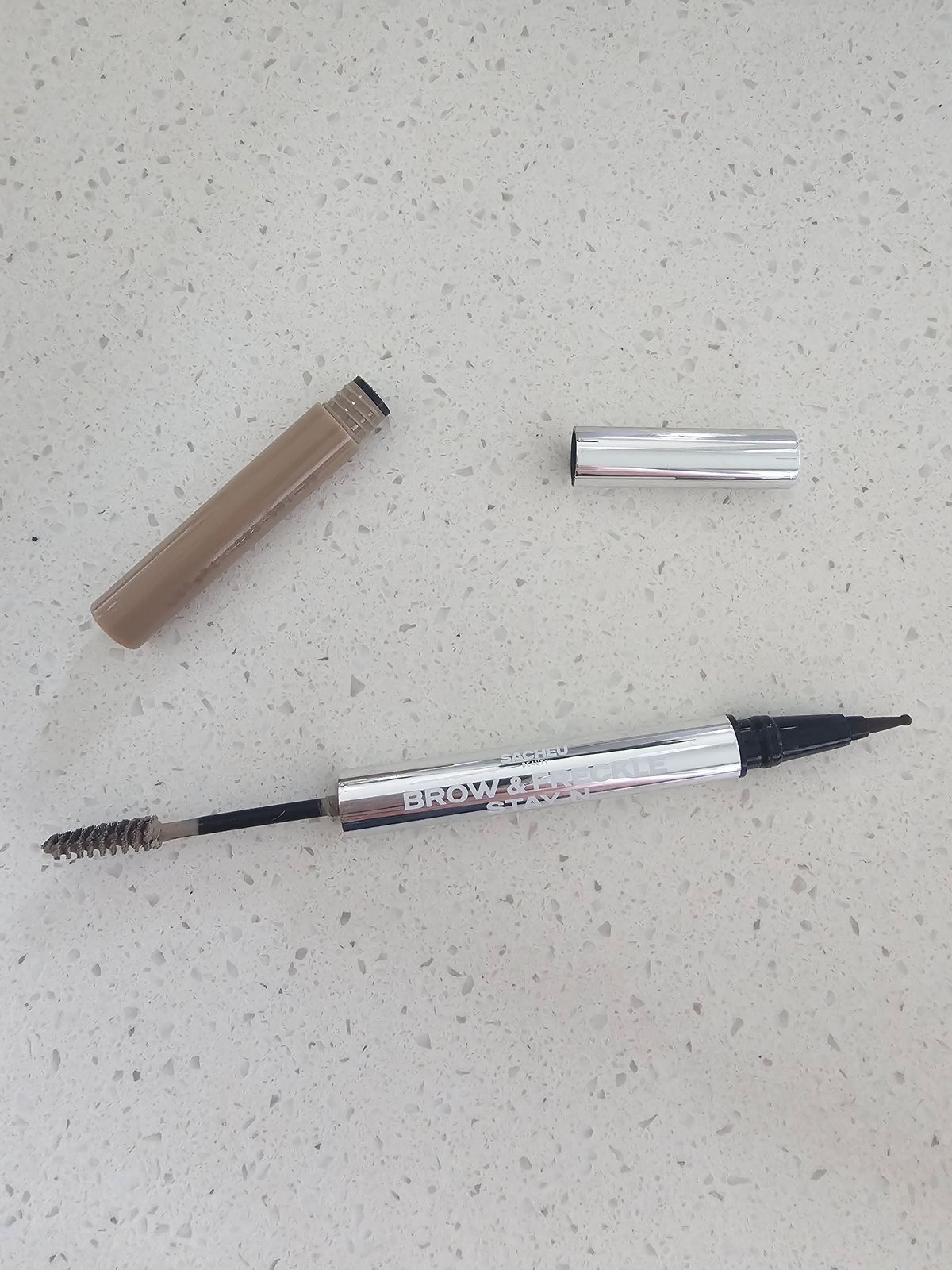 brand new, fresh out of package, i got 4 freckles before it dried. the felt tip bends and then you get a splatter of brown in a blob. the ball tip almost dries up and can't refill and then it's unusable. i love literally all of their products so this makes me sad. didn't even buy for the brow gel, just for the freckle pen.